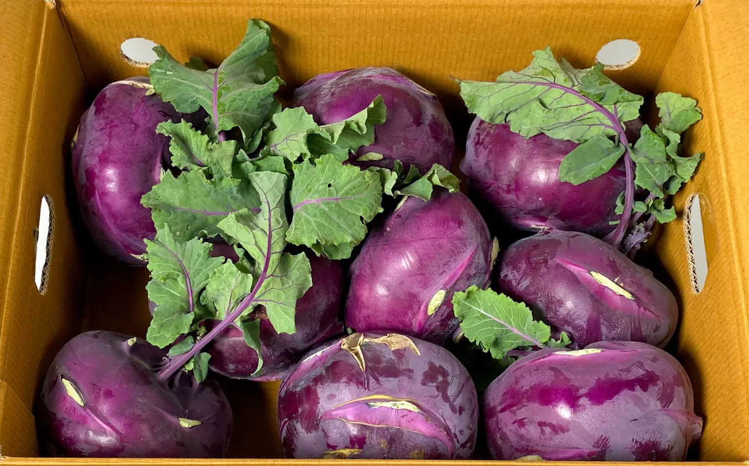 2. 받으신 콜라비는 가급적 신문지나 랩으로 개별퐝하여 1~5℃ 냉장고 신선실에 보관하세요.